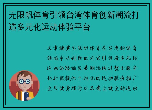 随着体育产业的不断发展,数字化与智能化的浪潮席卷全球,体育行业的生态体系也在发生巨大的变化。作为体育行业的一个重要创新者,D体育平台致力于打造全新的体育生态体系,通过深度融合技术与用户需求,推动产业升级并提升用户体验。本文将从四个方面详细探讨D体育平台如何通过创新的思维和技术推动体育产业发展,包括平...